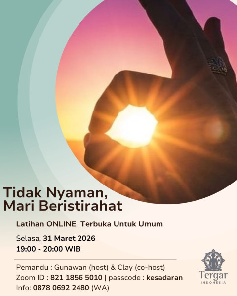 Terbuka untuk umum dan bebas biaya. Selasa, 31 Maret 2026, 19:00-20:00 WIB. Dipandu oleh Gunawan (host) dan Clay (co-host). Via ZOOM, meeting ID : 821 1856 5010 Passcode : kesadaran…