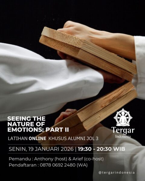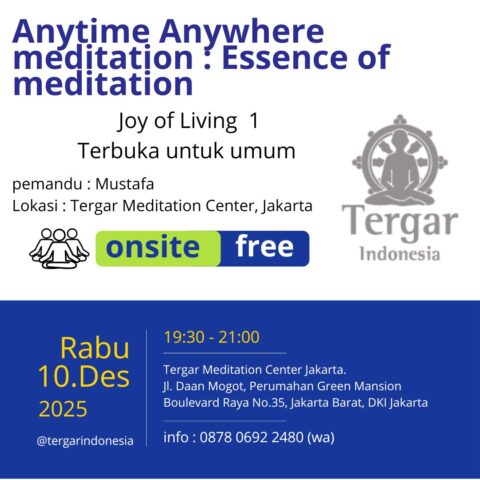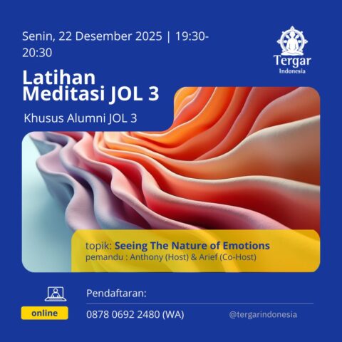 Diskusi dan Latihan meditasi JOL 3. Hanya untuk Alumni JOL 3. Senin, 22 Desember 2025, 19:30-20:30 WIB Dipandu oleh Anthony (Host) dan Arief (Co-host). Pendaftaran : 0878 0692 2480 (WA)…